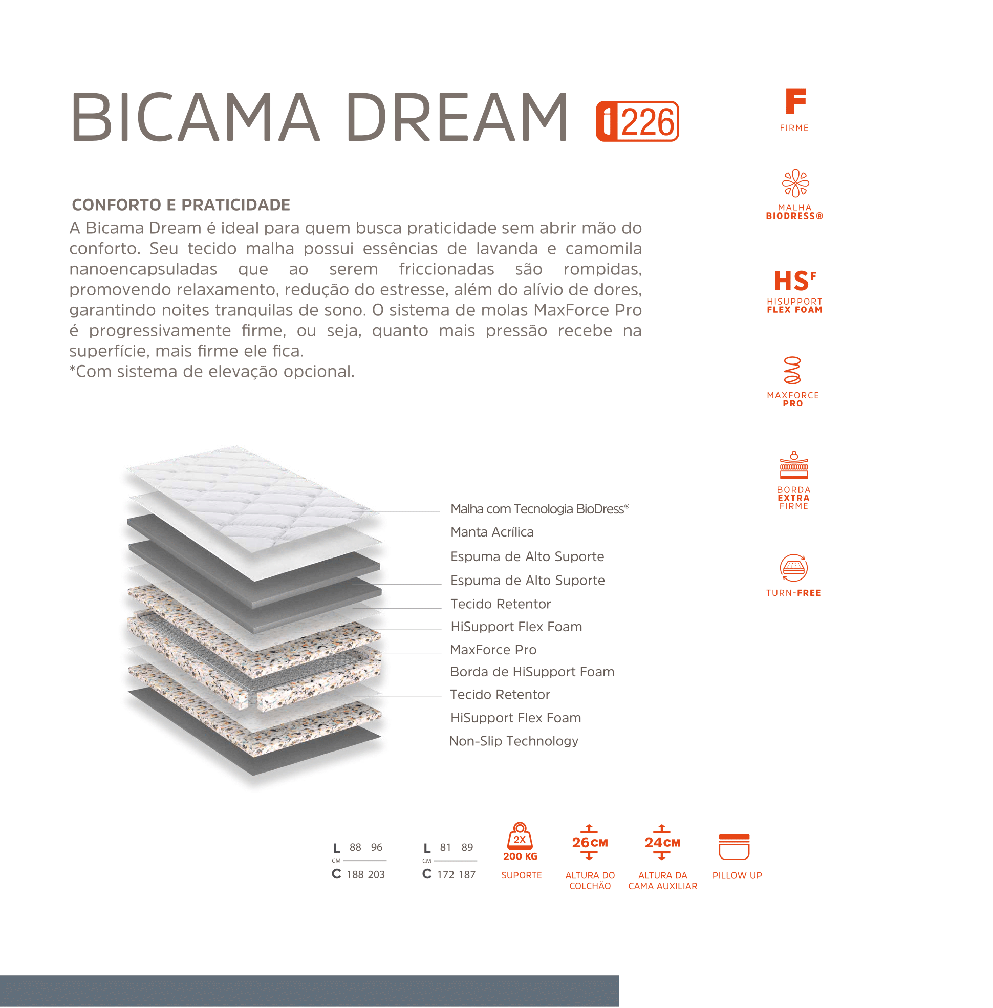 A Bicama Dream é a solução completa para otimizar seu espaço sem abrir mão do bem-estar, oferecendo um suporte firme, tecnologia de relaxamento e a praticidade de uma cama auxiliar.