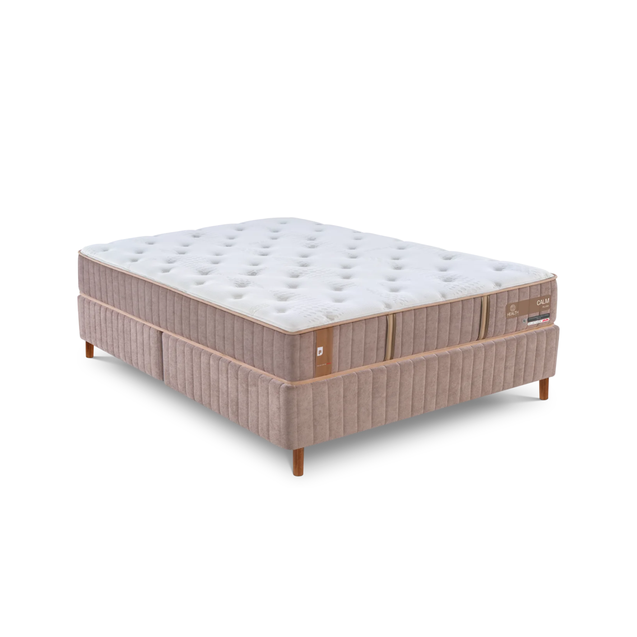 O colchão Pikolin Calm faz parte da linha Health System. Ele foi desenvolvido para proporcionar conforto e suporte. O tecido belga com tecnologia Purotex contém microcápsulas de probióticos. A fricção com o corpo abre as microcápsulas. Isso elimina alérgenos de ácaros. As camadas de conforto incluem espumas Reactive de alta resiliência e látex natural. A espuma Reactive se adapta a todos os biotipos. A estrutura de molas Normablock® Tri Zone Support tem as molas em formato de “Z”. A densidade das molas na região lombar é maior. Isso proporciona suporte extra para a coluna. A ligação longitudinal das molas isola os movimentos. A altura do colchão é de 30 cm. Suporta 200 kg por pessoa.