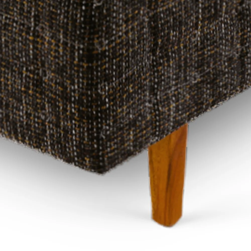 - O box padrão revestido com o mesmo tecido das laterais e os pés de madeira quadrados completam o visual, criando um ambiente luxuoso e acolhedor.
