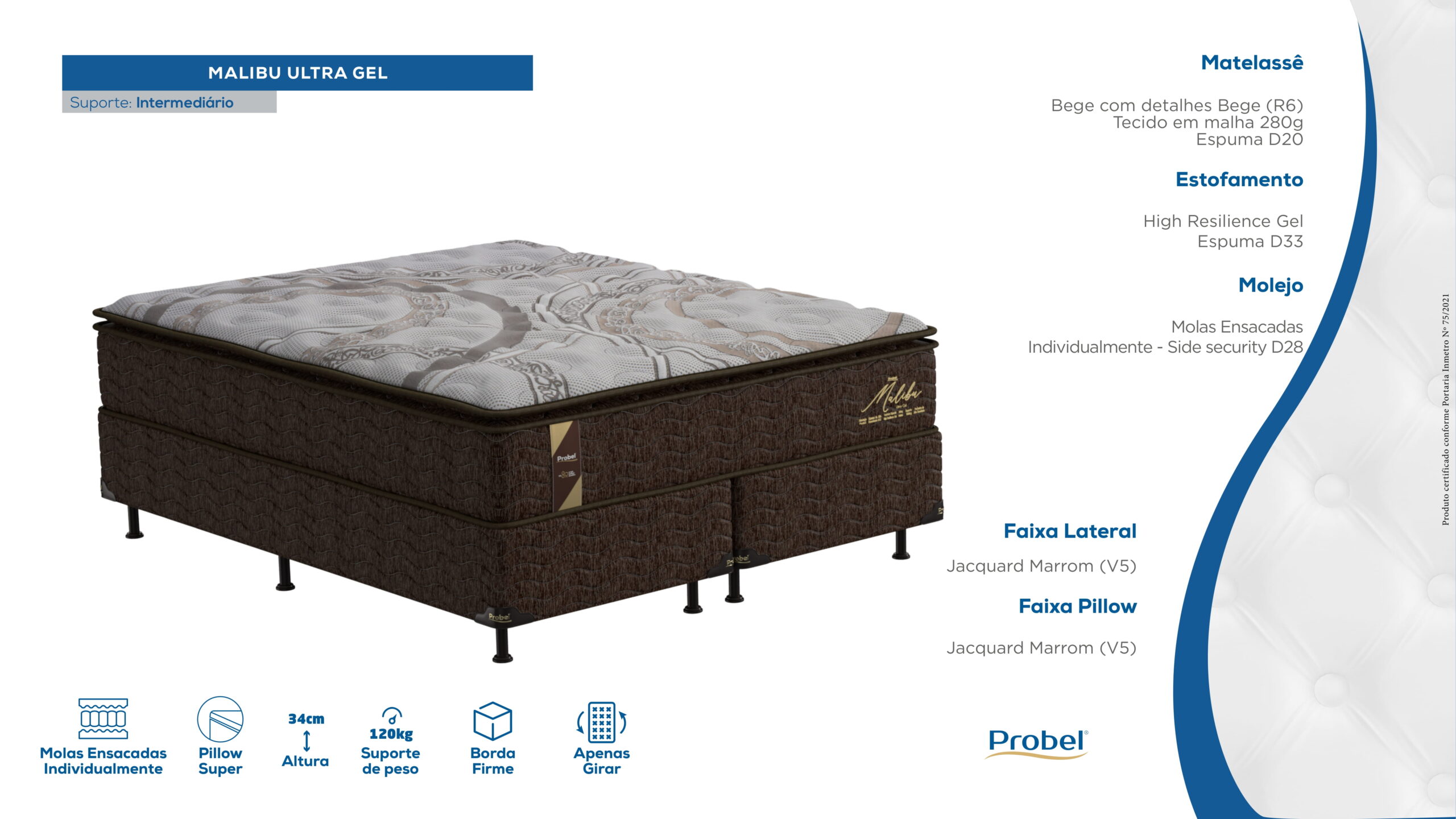 Este colchão apresenta espuma HR Ultra Gel, que reduz a temperatura da superfície em até 4ºC. O produto é feito com molas ensacadas individualmente. O sistema de molas fornece suporte ponto a ponto e se ajusta ao seu corpo. Uma pessoa não sente o movimento da outra. O colchão tem tecnologia No Turn, que dispensa a necessidade de virá-lo. Ele tem um nível de conforto intermediário. O suporte de peso é de 200 kg por pessoa.